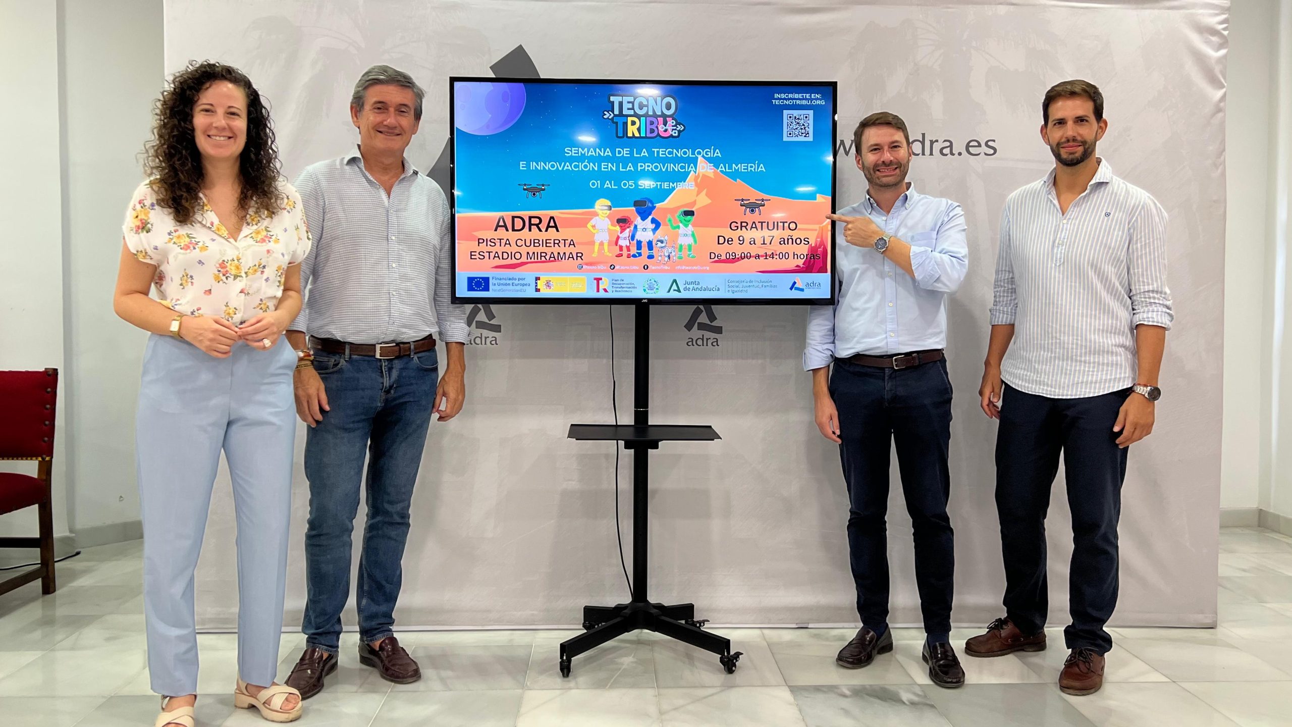 Las familias de Adra podrán seguir disfrutando de la conciliación laboral y familiar, del 1 al 5 de septiembre, gracias a la llegada a la ciudad del programa educativo ‘TecnoTribu’, que se desarrollará en la Pista Cubierta del Estadio Miramar de 09:00 a 14:00 horas. Esta iniciativa, que es totalmente gratuita, ha sido presentada por el alcalde, Manuel Cortés, y por el delegado territorial de Inclusión Social, Juventus, Familias e Igualdad, Francisco González Bellido, acompañados de concejales del equipo de Gobierno local. Las inscripciones están abiertas en www.tecnotribu.org, para niños, niñas y jóvenes de entre 9 y 17 años.