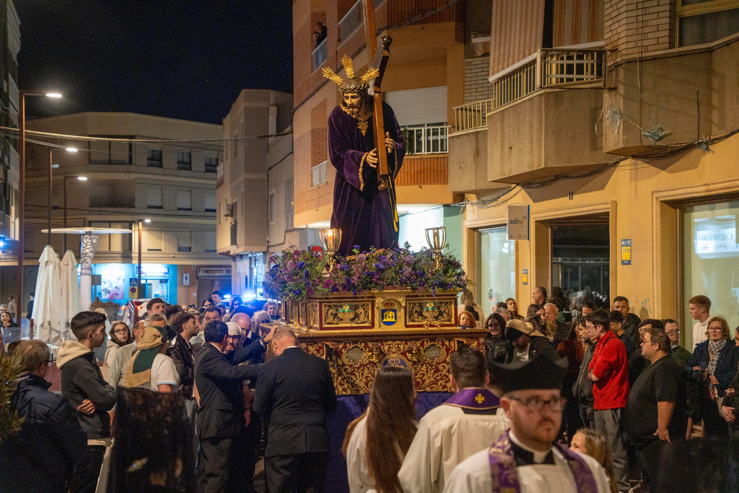 El Miércoles Santo en Adra ha estado protagonizado por la salida de Nuestro Padre Jesús Nazareno, que ha recorrido las calles cargando la cruz en una de las estampas más sobrecogedoras de la Semana Santa. Su caminar ha despertado un profundo sentimiento de devoción entre los presentes.