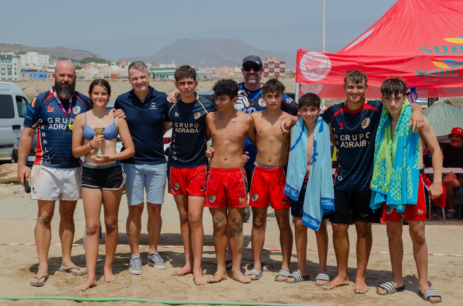 La playa de El Carboncillo de Adra ha acogido, el pasado sábado, el VIII Torneo de Rugby Playa ‘Ciudad de Adra’ con más de 300 participantes. Este torneo, organizado por el Club Marrajos Adra con la colaboración del Ayuntamiento, comenzó a las 10:30 horas con la disputa del torneo en categoría Sub14, Femenino Senior y Rugby Inclusivo, en total más de 120 jugadores representando a equipos de Granada, Almería y Murcia, y con la participación de jugadores del FC Barcelona y de Cisneros de Madrid.