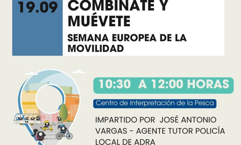 La Escuela de Familia vuelve a la ciudad milenaria, tras el parón veraniego, este viernes, 19 de septiembre, con la charla ‘Combina y muévete’, impartida por el Agente Tutor de la Policía Local de Adra, José Antonio Vargas. Se celebrará en el marco de la Semana Europea de la Movilidad, en el Centro de Interpretación de la Pesca, de 10:30 a 12:00 horas. Durante esta charla de sensibilización, se presentará a los asistentes las alternativas de movilidad sostenibles, como pueden ser las bicicletas, patinetes, caminar, transporte público, etc., destacando sus beneficios tanto para la salud como para el cuidado del medio ambiente.